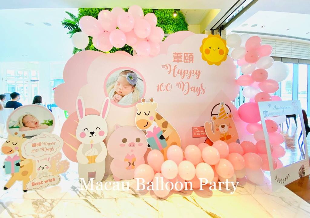 彩色百日宴主題氣球拱門 澳門氣球派對 澳門百日宴佈置專門店