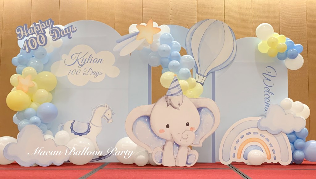 男仔BB百日宴主題氣球拱門 澳門氣球派對 澳門百日宴佈置專門店
